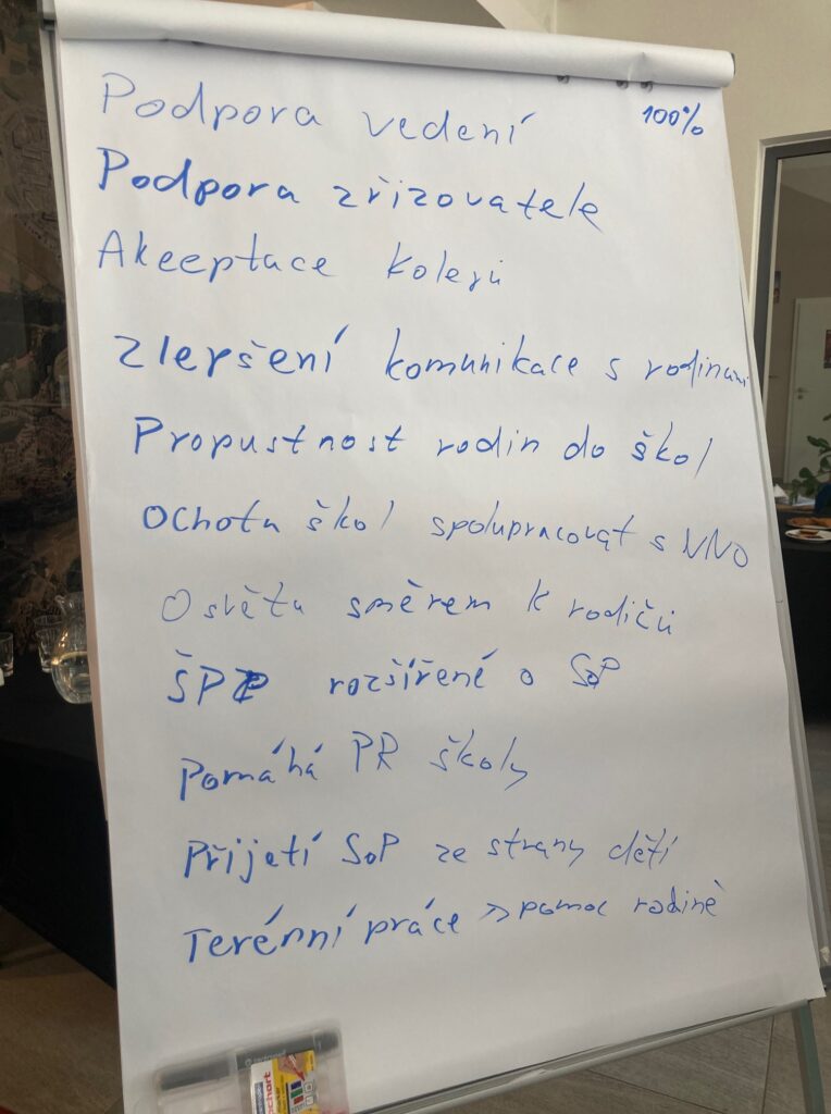 Role sociálního pedagoga ve škole se dále s odborníky z praxe řešila v rámci facilitované interaktivní diskuze, která otevřela řadu témat a postřehů. Diskutovalo se nad překážkami a cestami, tématem důvěry a spolupráce. Hodně diskutované téma bylo sdílení informací z kolegy, oznamovací povinnost, a to bez narušení důvěry žáka či rodiny. Velmi důležitá je upřímnost a vysvětlení. Rozebrání situací, návrhy řešení i sdílení praxe byly hodně podnětné.